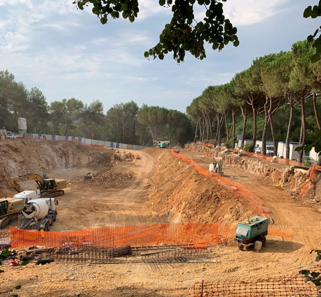 Le chantier a démarré par la réalisation des parois de soutènement périphériques, les terrassements en masse suivent en parallèle.